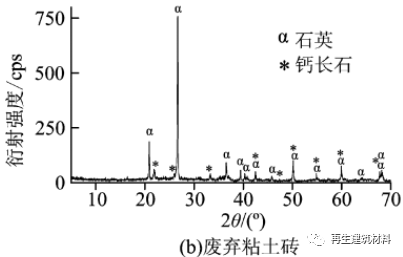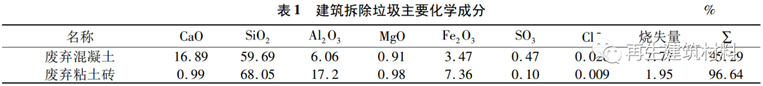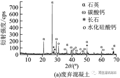 廢棄混凝土主要由廢棄混凝土粉磨后 200 目篩下細粉組成,廢棄混凝土中含有石英、碳酸鈣、長石和水化硅酸鈣礦物, 廢棄粘土磚中含有石英和鈣長石,具有一定的礦物活性,具備作水泥活性混合材的條件。