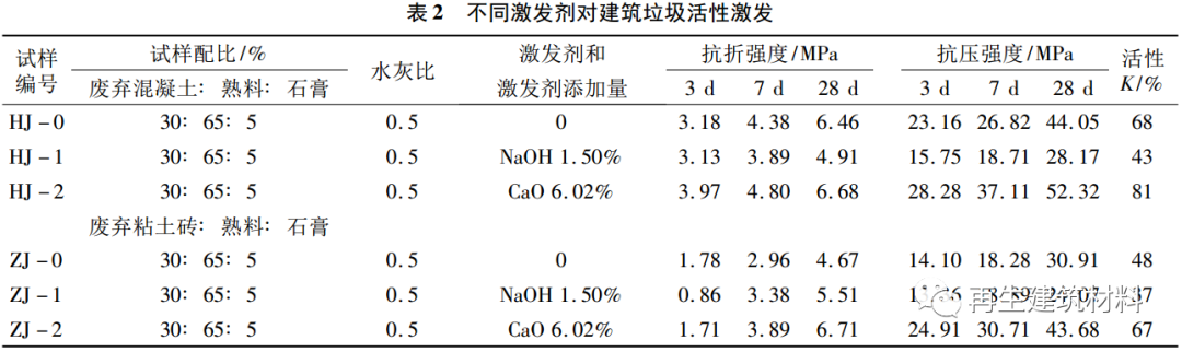 2.2建筑垃圾活性激發(fā)試驗結果與討論