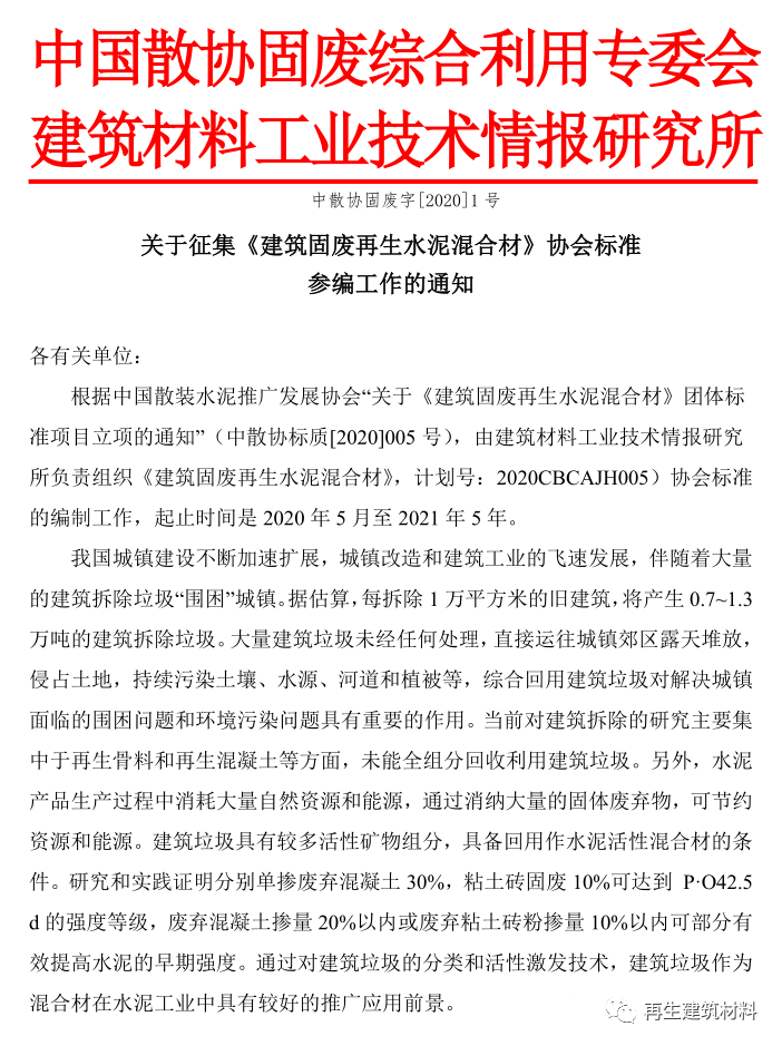 我國城鎮(zhèn)建設不斷加速擴展,城鎮(zhèn)改造和建筑工業(yè)的飛速發(fā)展,伴隨著大量的建筑拆除垃圾“圍困”城鎮(zhèn)。據(jù)估算,每拆除 1 萬平米 的舊建筑, 將產(chǎn)生 0.7~1.3 萬 t 的建筑拆除垃圾。大量建筑垃圾未經(jīng)任何處理,直接運往城鎮(zhèn)郊區(qū)露天堆放,侵占土地,持續(xù)污染土壤、水源、河道和植被等,綜合回用建筑垃圾對解決城鎮(zhèn)面臨的圍困問題和環(huán)境污染問題具有重要的作用 。當前對建筑拆除的研究主要集中于再生骨料和再生混凝土等方面,未能全組分回收利用建筑垃圾。另外,水泥產(chǎn)品生產(chǎn)消耗大量自然資源和能源,可消納大量的固體廢棄物,節(jié)約資源和能源。為了提高建筑拆除垃圾的資源化效率和質(zhì)量,筆者對建筑拆除垃圾用作水泥混合材進行了試驗研究。